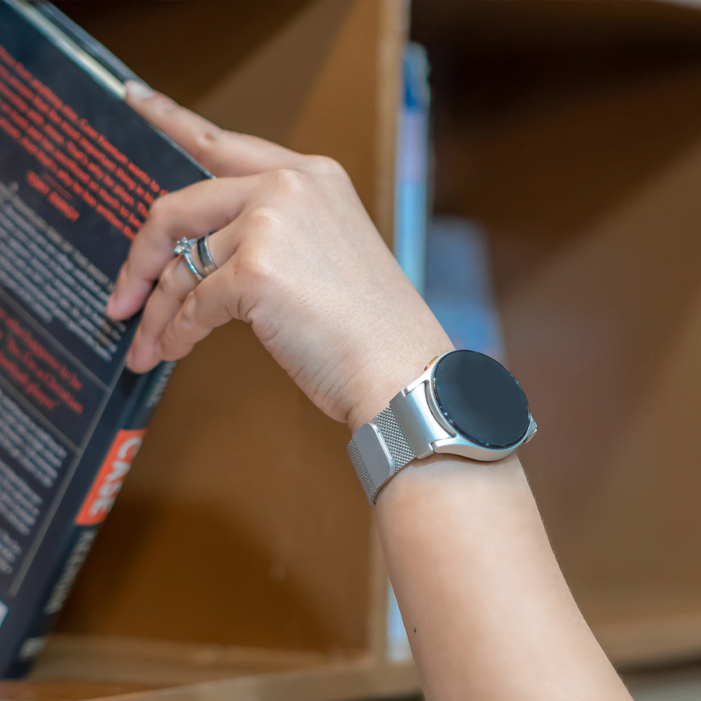 The Appello Milanese Galaxy Watch Band offers a luxurious touch to your Galaxy Watch without stretching your budget. Our captivating woven stainless steel design is the ideal choice for those looking to elevate their Galaxy watch's appearance.
